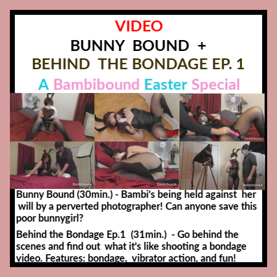 Bunny Bound, the video recreation version of "Leaping Forward" photoset, has Bambi hiring a photographer off the internet to take photos/video of her in a bunnysuit as a gift for her husband, Stag.